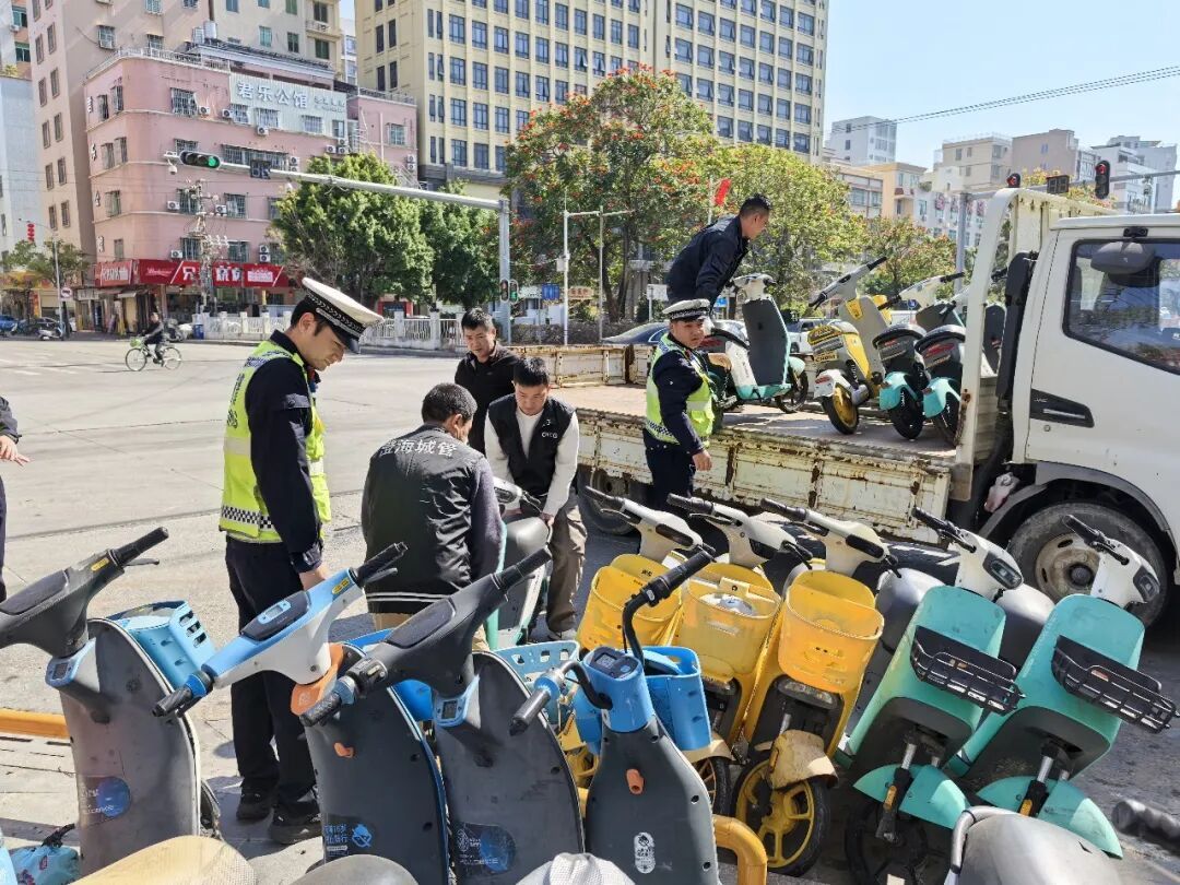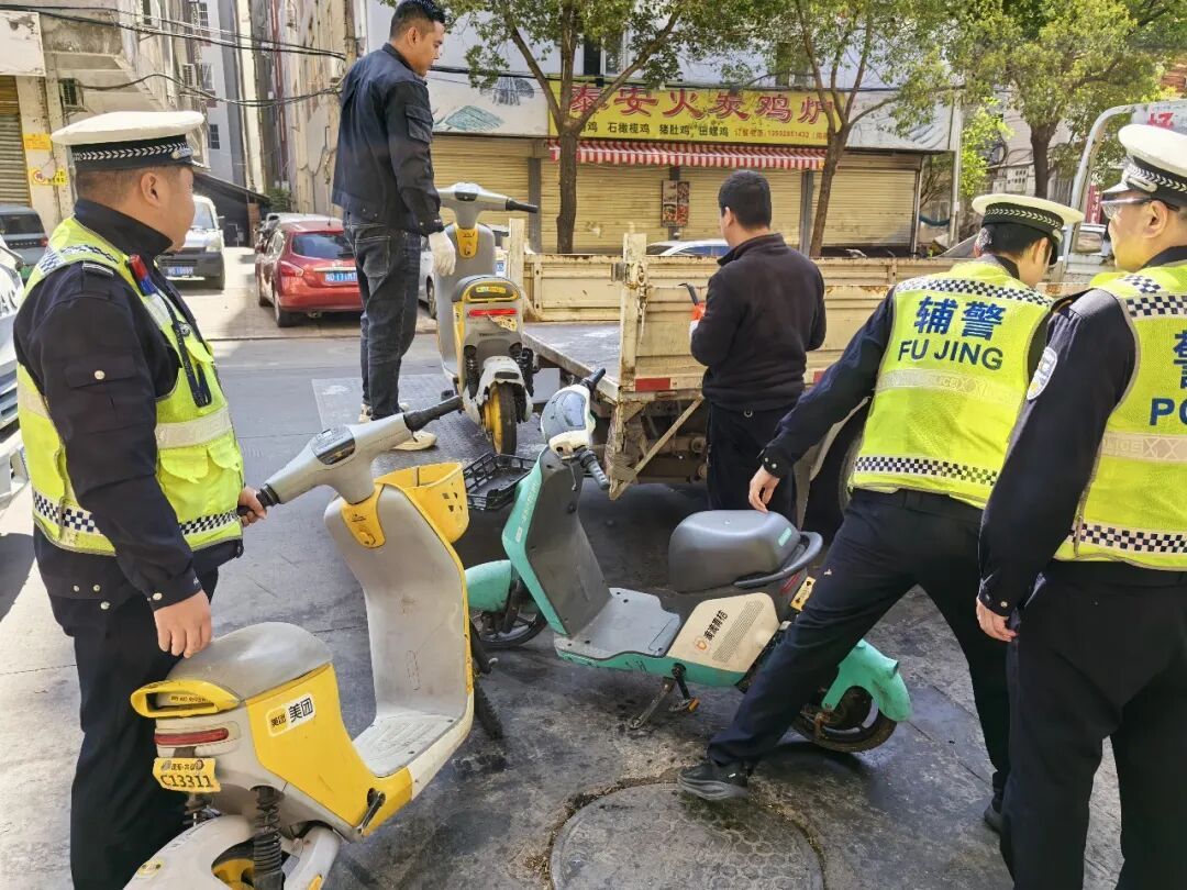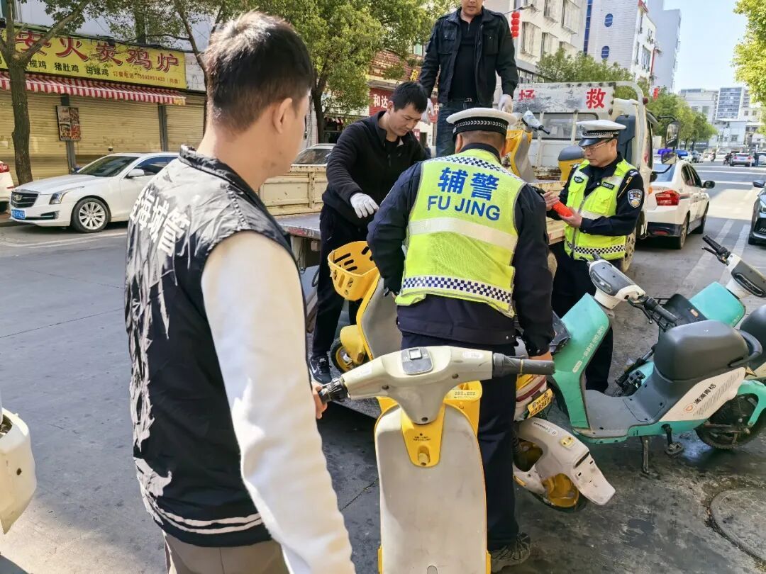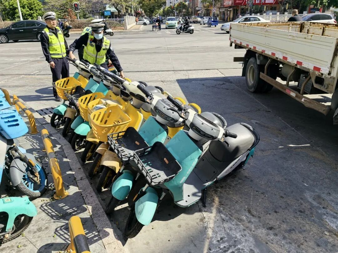 巡查中发现,部分共享电动车随意停放在机动车道、路口转弯处、汽车停车泊位上,这些乱停乱放行为不仅影响市容市貌,更给行人和车辆通行带来安全隐患,执法人员对违停车辆依法予以拖移。